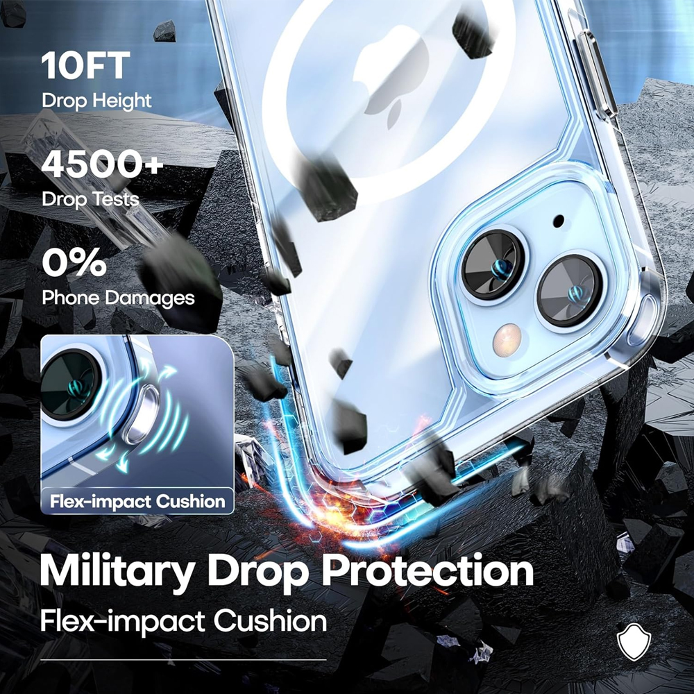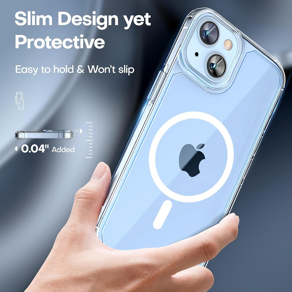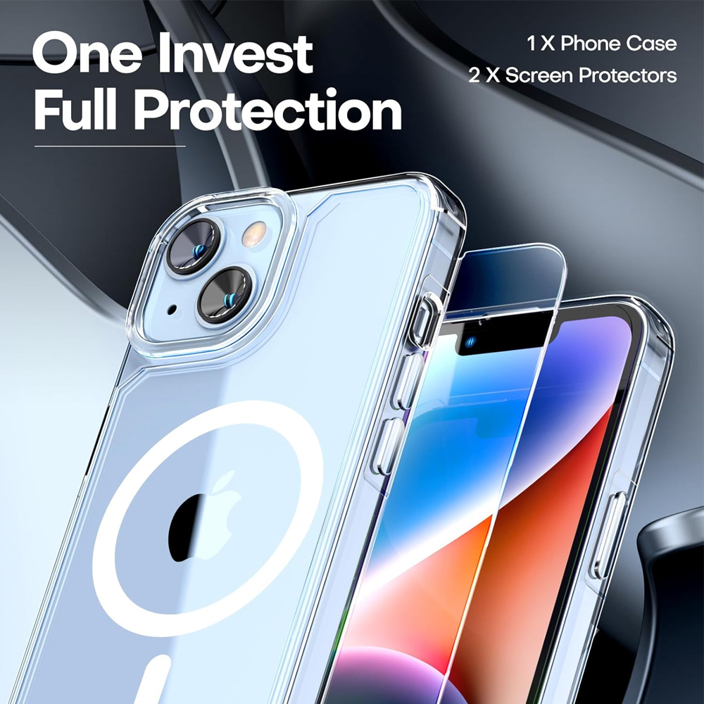Capa TAURI Magnética para iPhone 14 6,1”, Proteção 360° com 2 Protetores Tela 9H, À Prova de Choque, Transparente, Sem Amarelamento, Compatível com MagSafe, Design Fino e Confortável