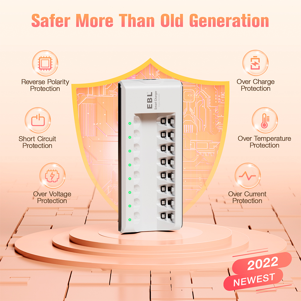 2. Tecnologia de Carregamento Inteligente e Seguro EBL: Equipado com sistema de proteção avançado contra sobrecarga, superaquecimento, curto-circuito e polaridade reversa. Este carregador 9V Li-ion inteligente garante um processo de carga seguro, prolongando a vida útil de suas baterias recarregáveis e protegendo seus valiosos equipamentos.