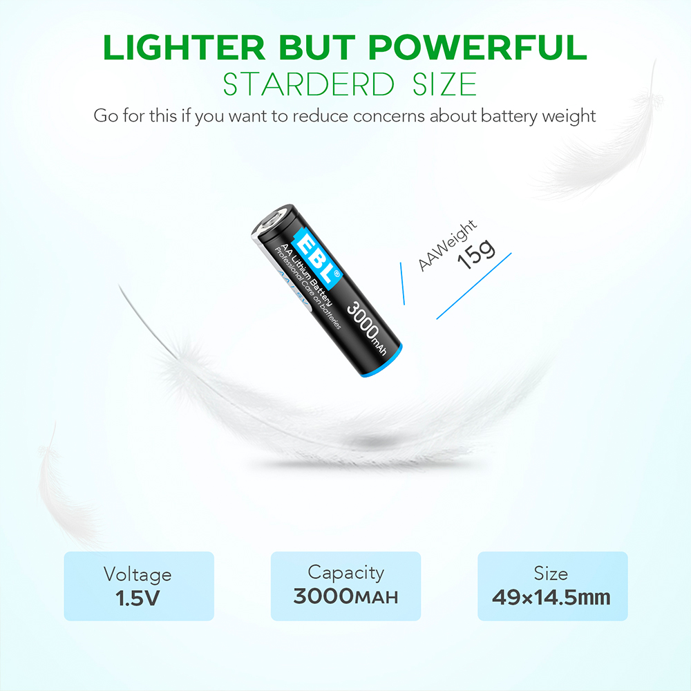 Pilhas AA Lítio 3000mAh 1.5V EBL Não Recarregável 4unids