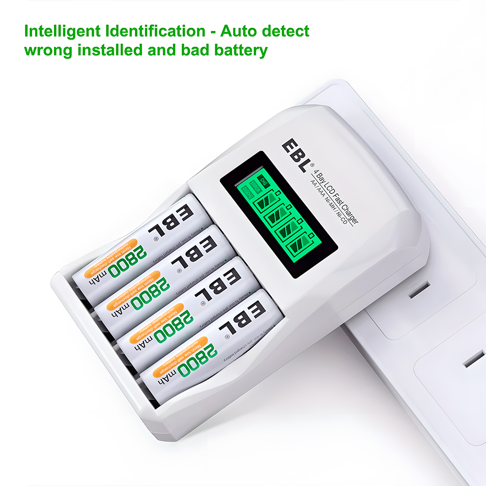 Carregador De Pilhas EBL 4 Slots AA AAA Com Tela Lcd