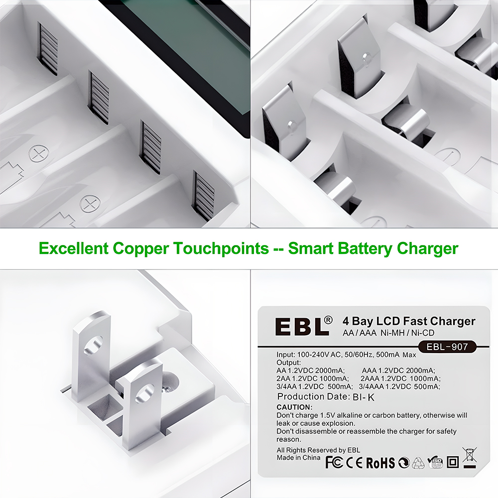 3.  Proteção Avançada e Segura: Equipado com múltiplas proteções contra sobrecarga, curto-circuito, inversão de polaridade e superaquecimento, garantindo a segurança de suas pilhas e do Carregador EBL LN-6907 durante todo o processo de carregamento.