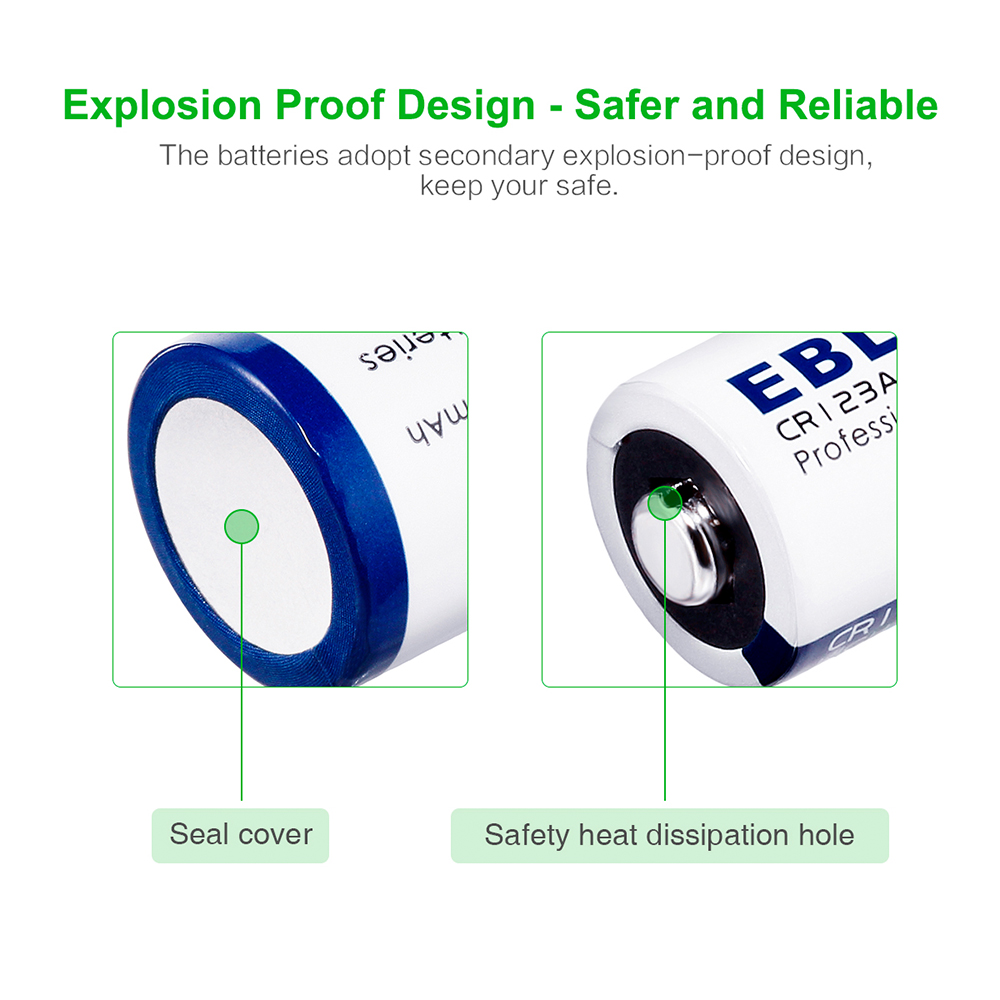 Bateria EBL CR123A Lítio 3V 1600mAh Não Recarregável 4Un