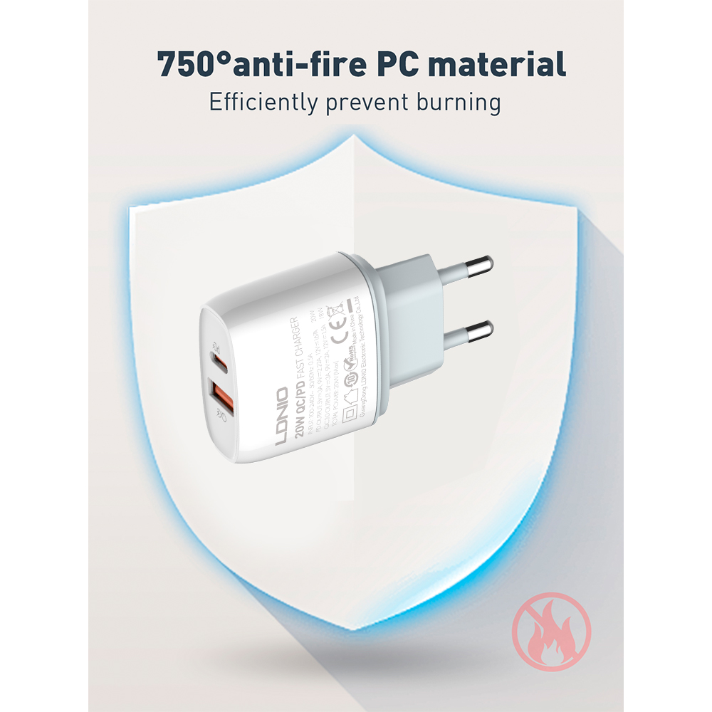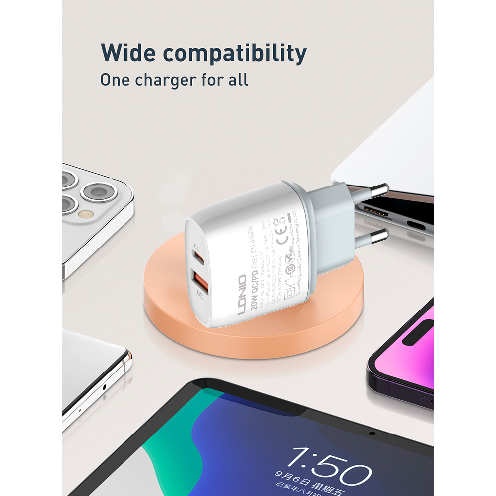 Carregador USB C/A PD 20W LDNIO Q229 QC3.0 Turbo, Fonte Rápida Universal para Notebooks e Celulares com Design Moderno