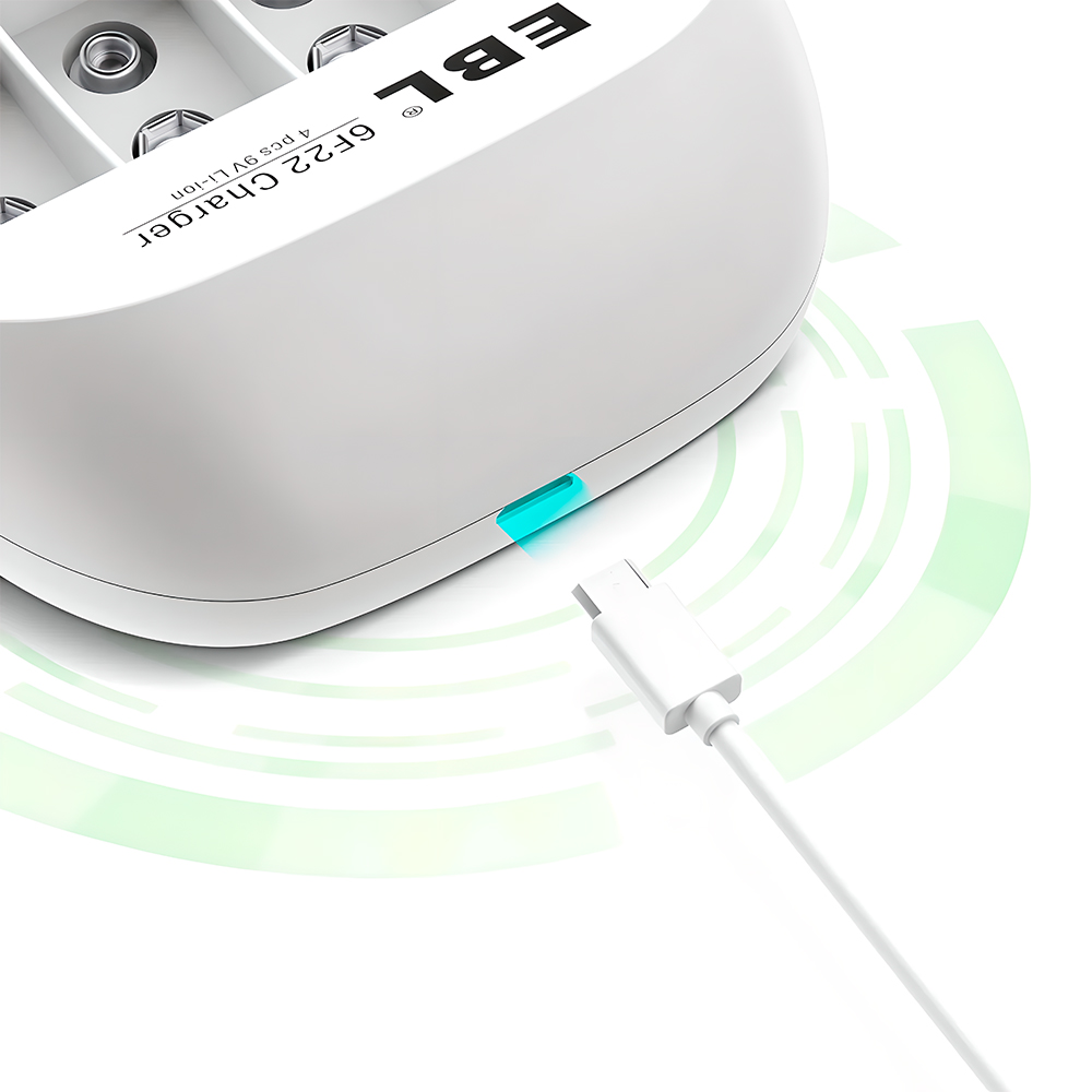 Carregador Bateria 9V EBL Li-ion 4 Slots LN-6414 Rápido