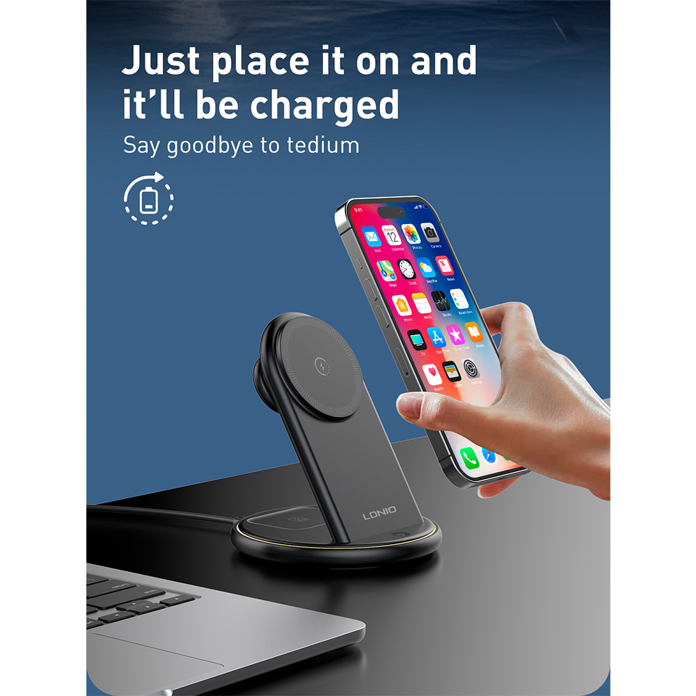 1. Carregamento Ultra Rápido 30W: Experimente a eficiência do Carregador Sem Fio Ldnio WL02, que oferece 30W de potência para um carregamento rápido e otimizado. Com entrada USB-C (Tipo C), compatível com 5V3A, 9V3A e 12V2.5A, este dispositivo garante eficiência energética, permitindo que seu smartphone esteja pronto em menos tempo.