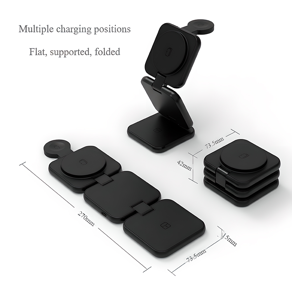 1. Carregamento 3-em-1 Super Rápido: Permite carregar simultaneamente smartphones, smartwatches e fones de ouvido sem fio. Ideal para economizar tempo, manter todos os dispositivos prontos para uso e organizar sua mesa de forma prática e eficiente.