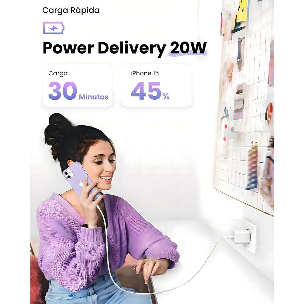 1. Carregamento Ultra-Rápido 20W: Experimente a máxima velocidade com o Carregador Ugreen de 20W, equipado com Power Delivery (PD). Ideal para recarregar rapidamente seu smartphone, tablet e outros dispositivos compatíveis, otimizando seu tempo e garantindo uma carga eficiente.