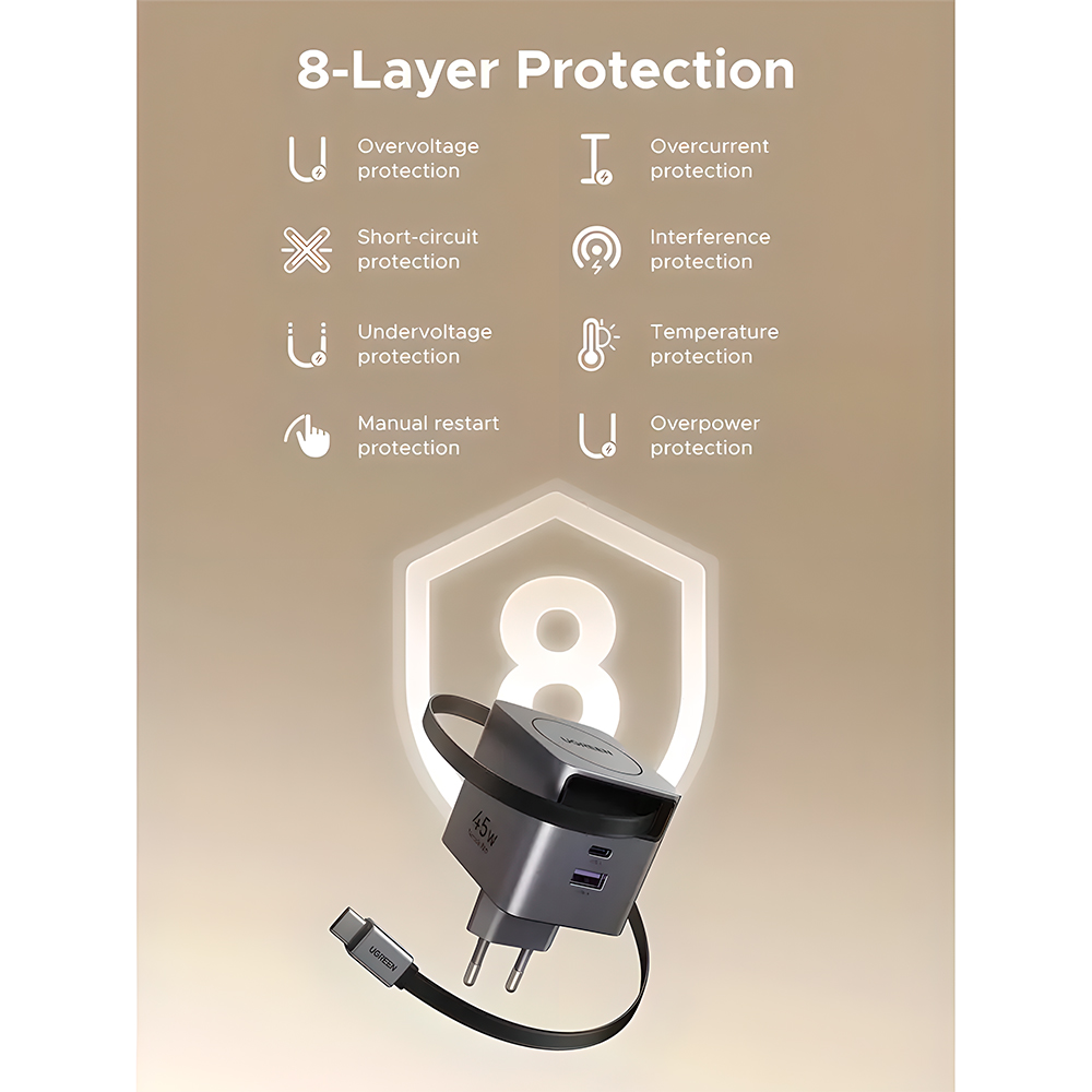5. Carregamento Seguro e Confiável com a Qualidade Ugreen: Desenvolvido com múltiplos sistemas de proteção, o carregador garante segurança contra sobrecorrente, sobretensão, superaquecimento e curto-circuito. Conte com a durabilidade e a confiabilidade da marca Ugreen para proteger seus eletrônicos. Garantia 90 dias