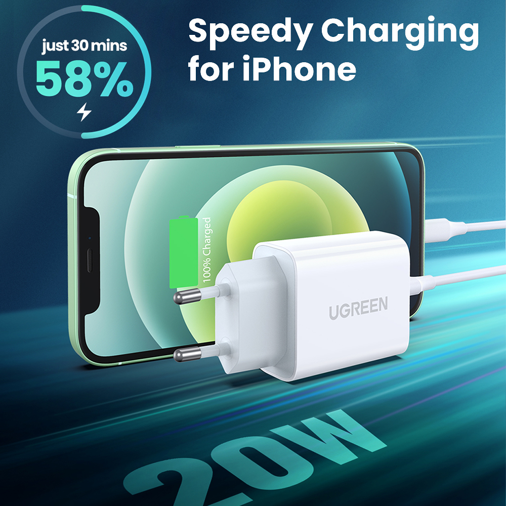 Carregador Ugreen Cd137 Micro Usb Tipo C PD 20W Branco