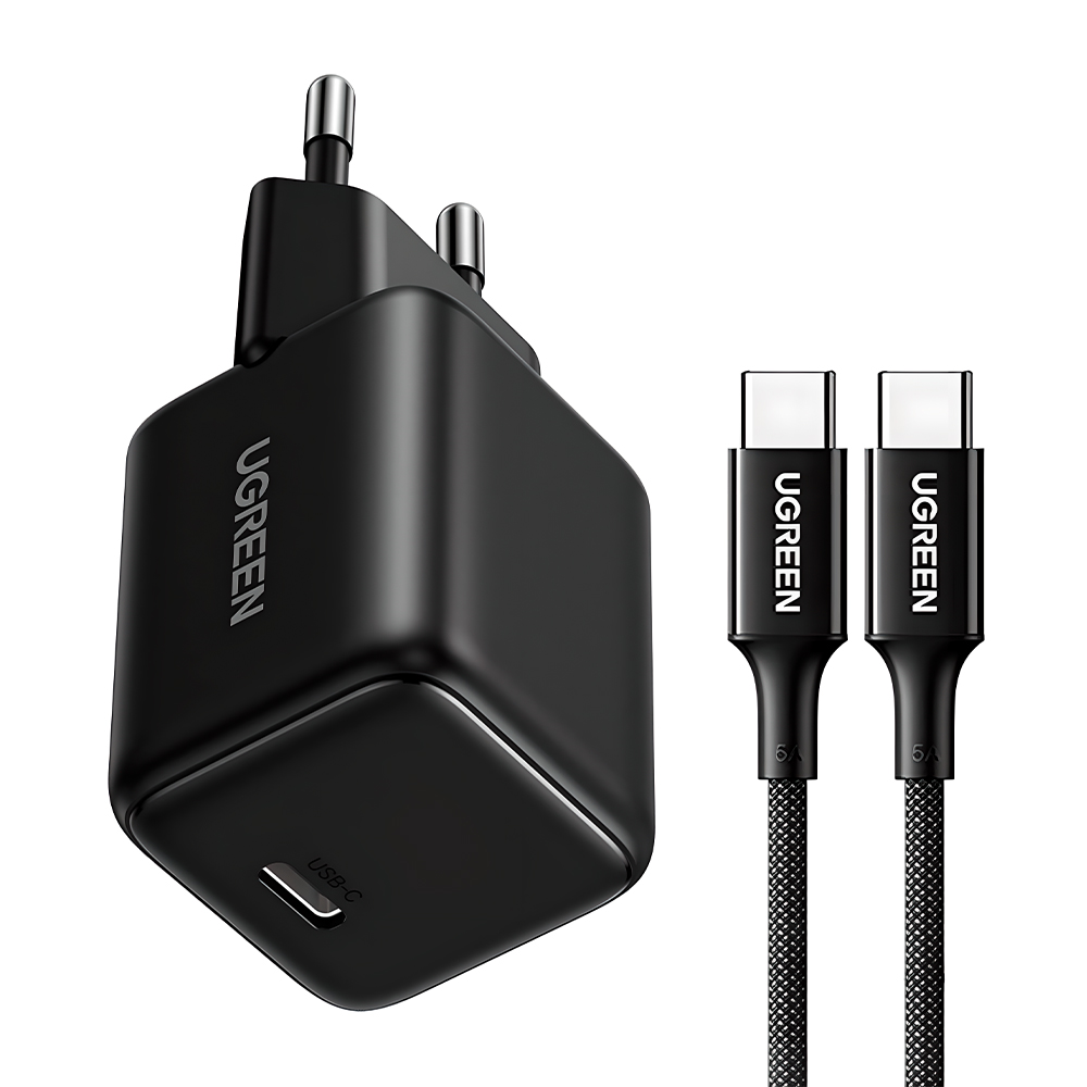 Carregador UGREEN Usb C 30W GaN PD PPS Cabo 1 Metro Preto