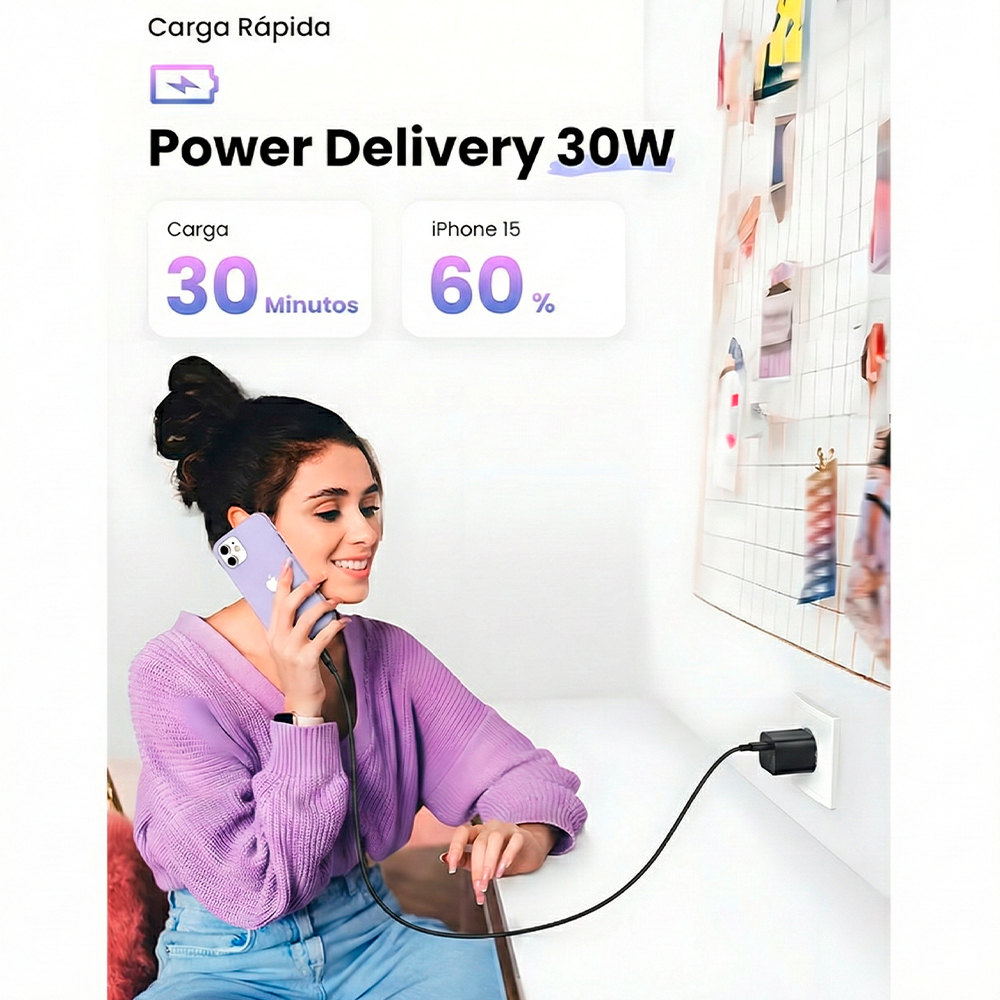 1. Carregamento Ultra-Rápido 30W PD: Experimente a velocidade de carregamento superior com o Carregador Ugreen 30W Power Delivery (PD). Ideal para alimentar rapidamente seu smartphone, tablet e até notebooks menores, garantindo que seus dispositivos estejam sempre prontos para uso em tempo recorde.