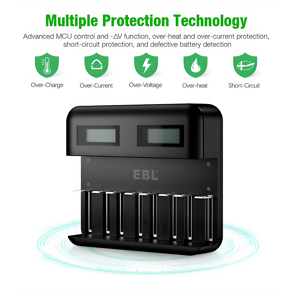 2. Carga Rápida e Eficiente: Com uma saída de 1500-2100mA, este carregador EBL otimiza o tempo de recarga das suas pilhas recarregáveis. Desfrute de maior agilidade e eficiência na hora de energizar seus equipamentos, reduzindo esperas.