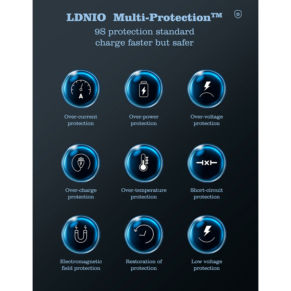 5. Segurança e Material Antichamas Premium: Construído com material de Policarbonato (PC) à prova de fogo, o LDNIO Q4010 oferece Múltiplas Proteções de Segurança, como defesa contra sobretensão, sobrecorrente e curto-circuito, assegurando o uso diário e a máxima proteção para todos os seus dispositivos. Garantia 90 dias
