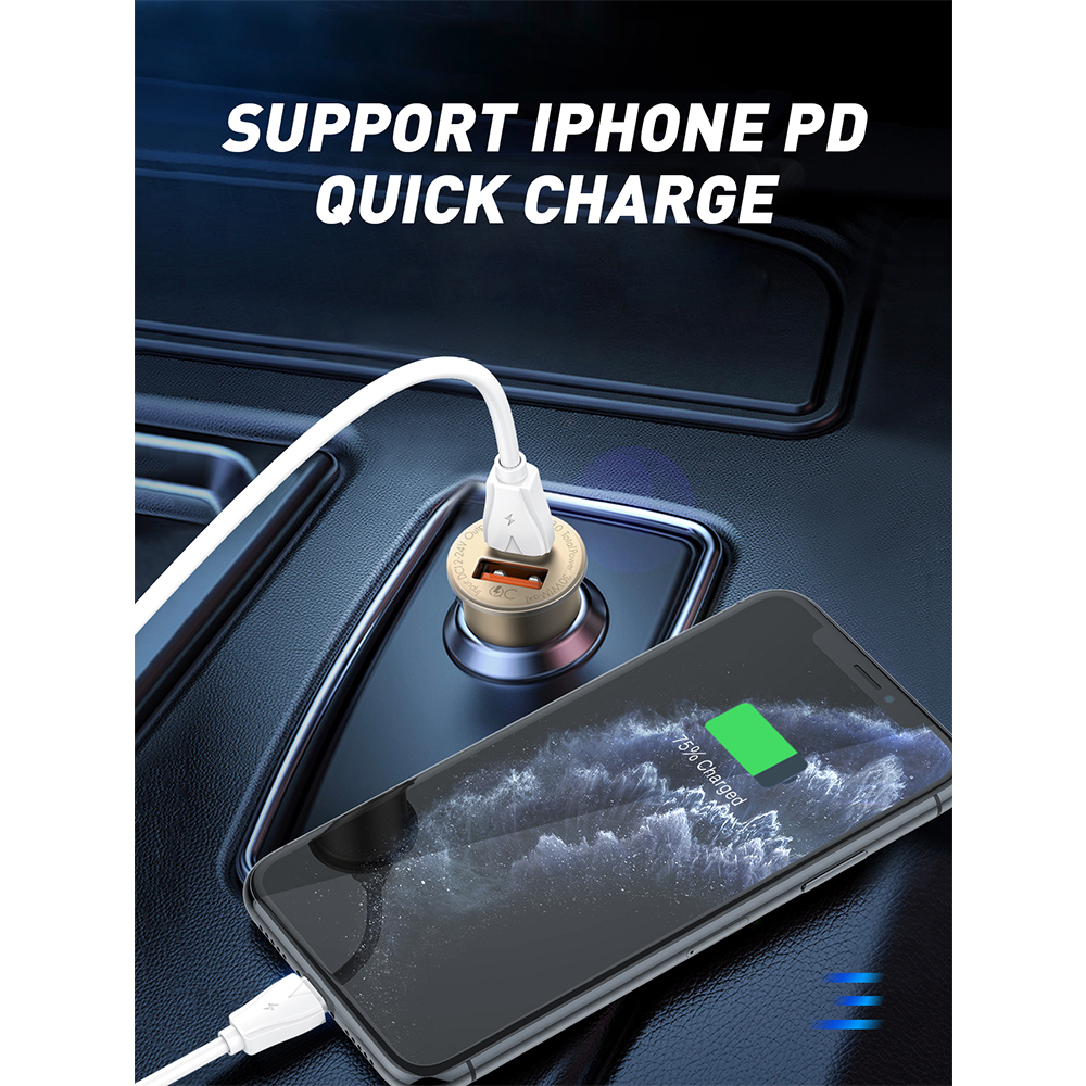 Carregador Veicular Carro Usb A/C Ldnio PD QC4.0 Dourado