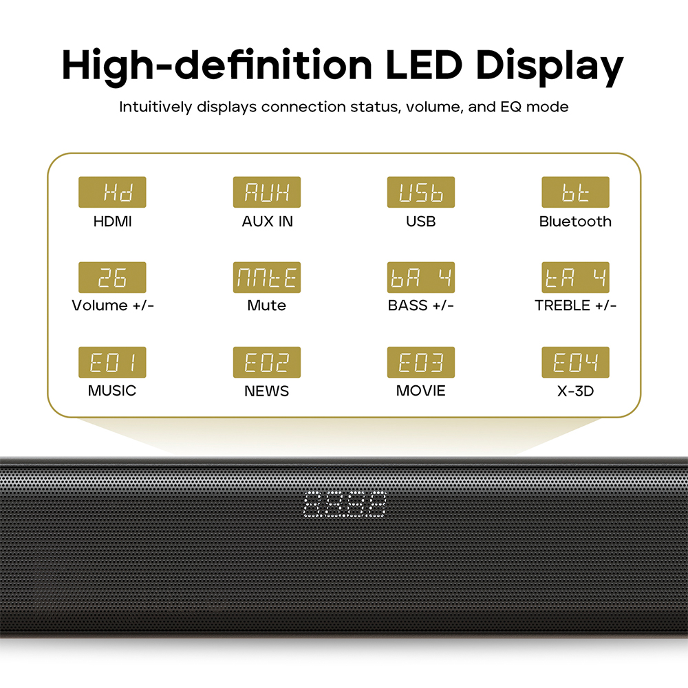 Soundbar Tribit S1 2.1 200W Subwoofer BT 5.3 Controle TV LED