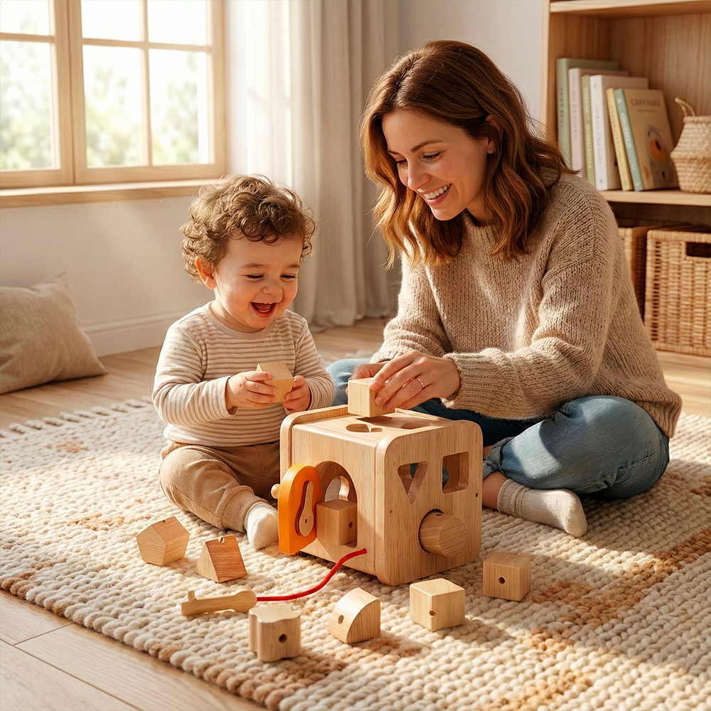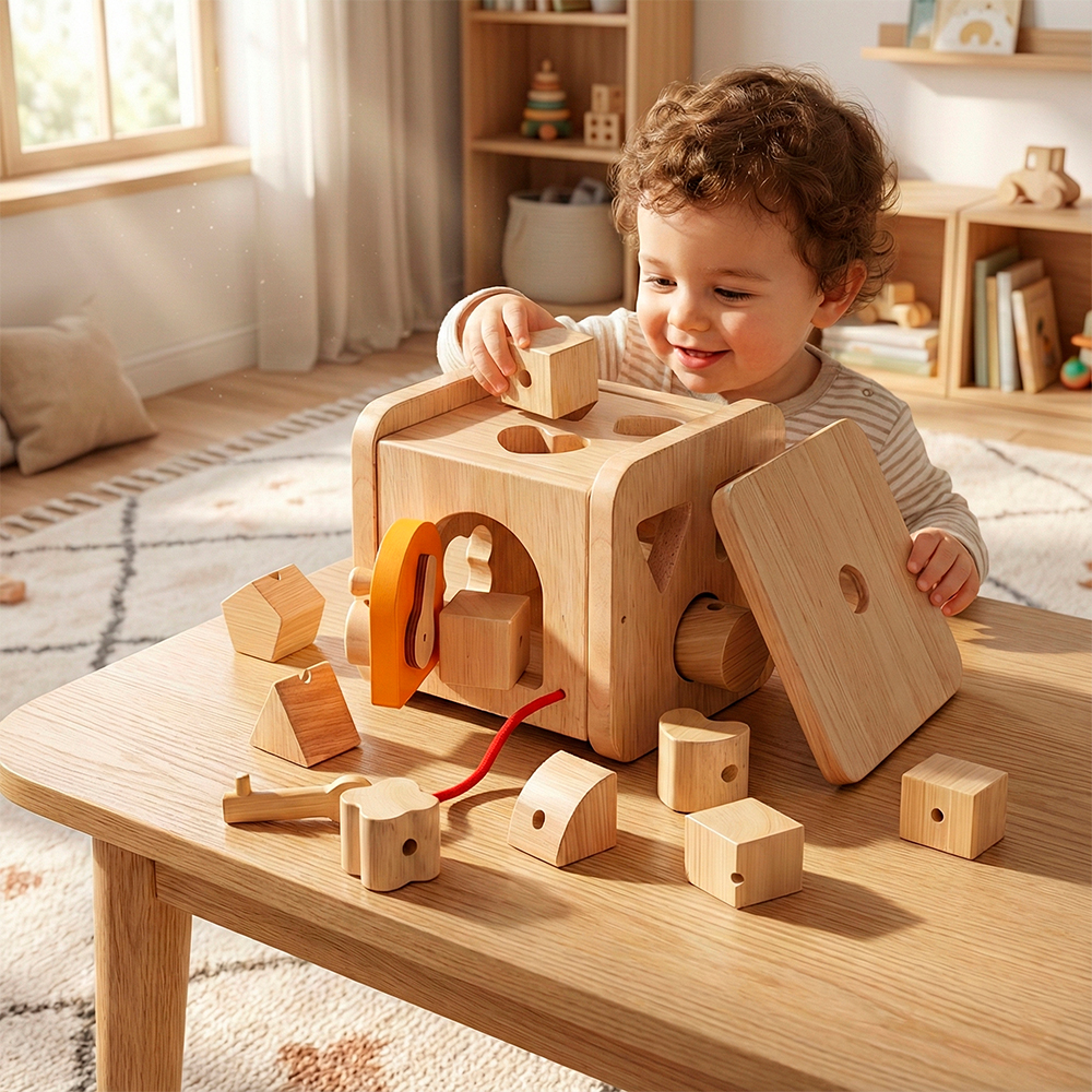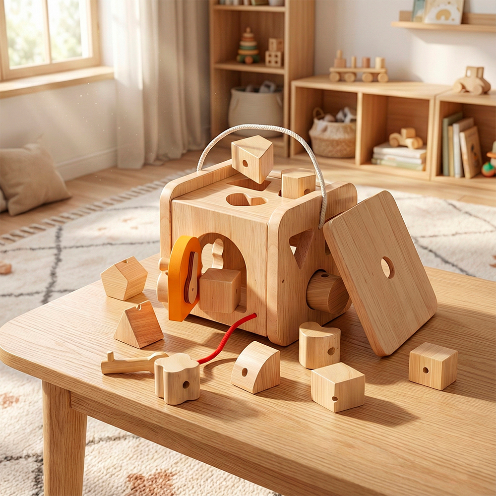 Classificador Formas Boby Caixa Madeira Encaixe Cor Natural