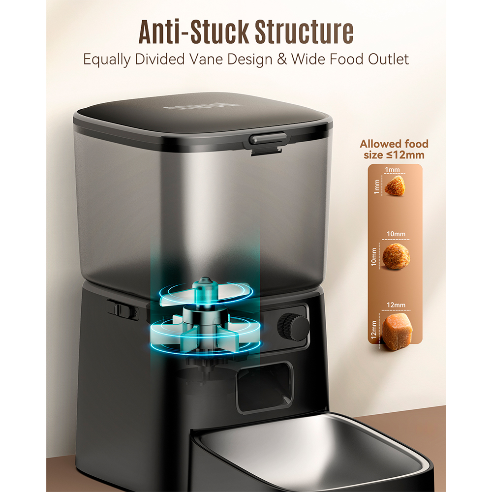 2. Controle Total Via App Intuitivo: Configure facilmente horários e porções de ração seca através do aplicativo dedicado. Este alimentador Oneisall permite criar uma rotina alimentar saudável e personalizada, evitando excessos ou faltas, ideal para tutores ocupados que buscam praticidade.