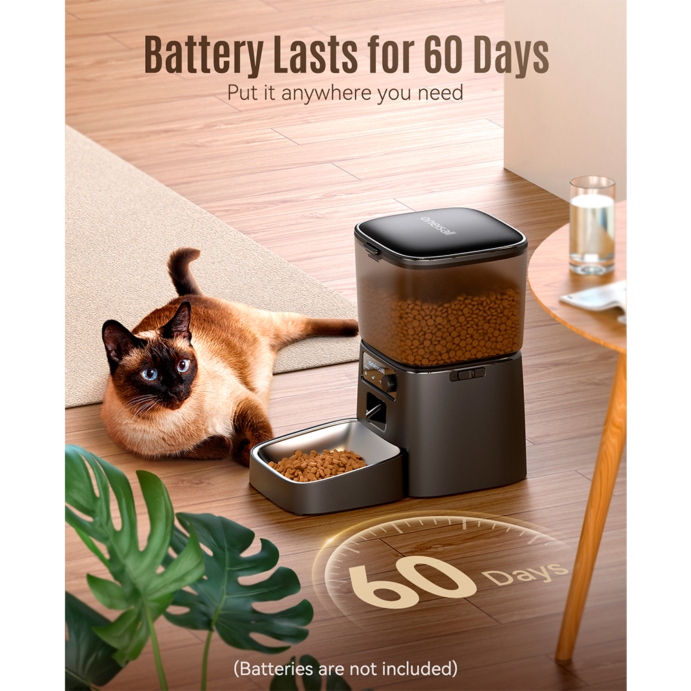 4. Liberdade e Tranquilidade para o Tutor: Tenha a tranquilidade de saber que seu pet será alimentado no horário certo, mesmo quando você estiver fora. Perfeito para viagens curtas ou para manter a rotina diária, este comedouro inteligente Oneisall cuida do bem-estar alimentar do seu companheiro.