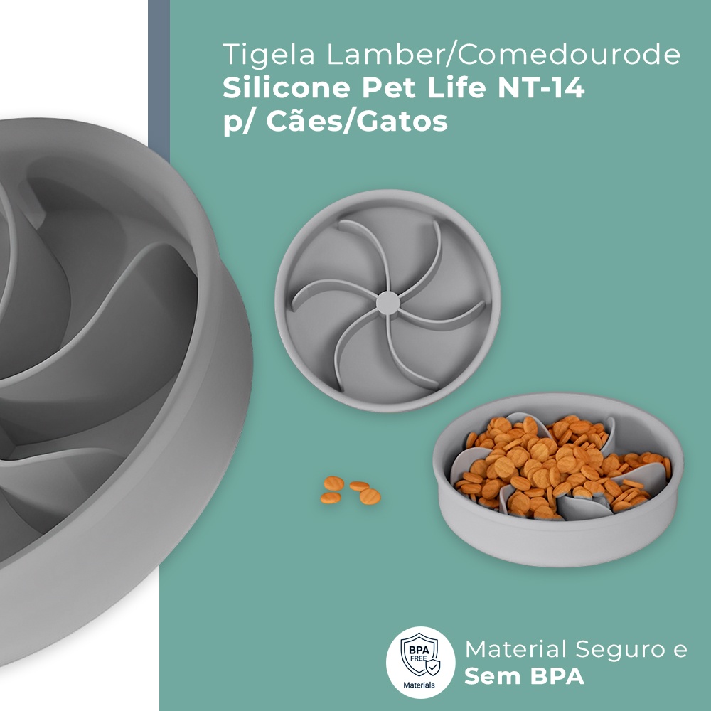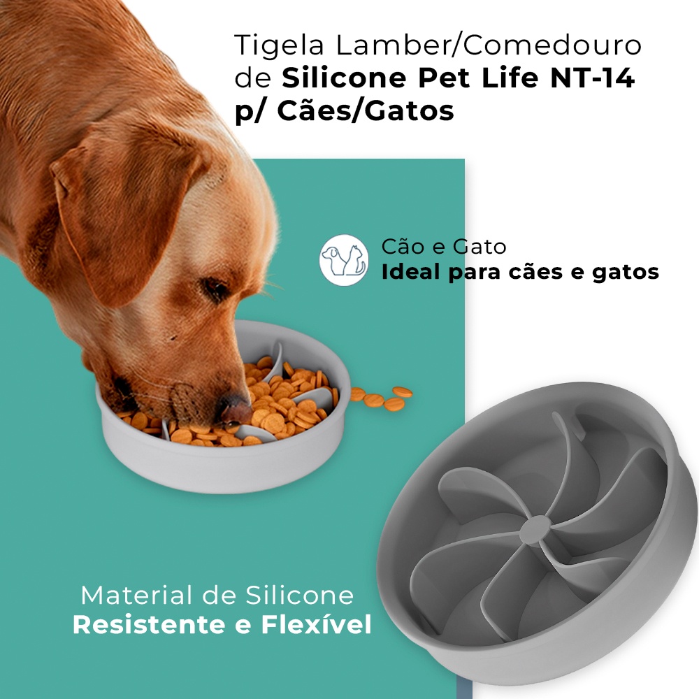 Tigela Lamber/Comedouro de Silicone Pet Life NT-14 para Cães/Gatos, Alimentação Lenta, Design Prático, Cor Cinza