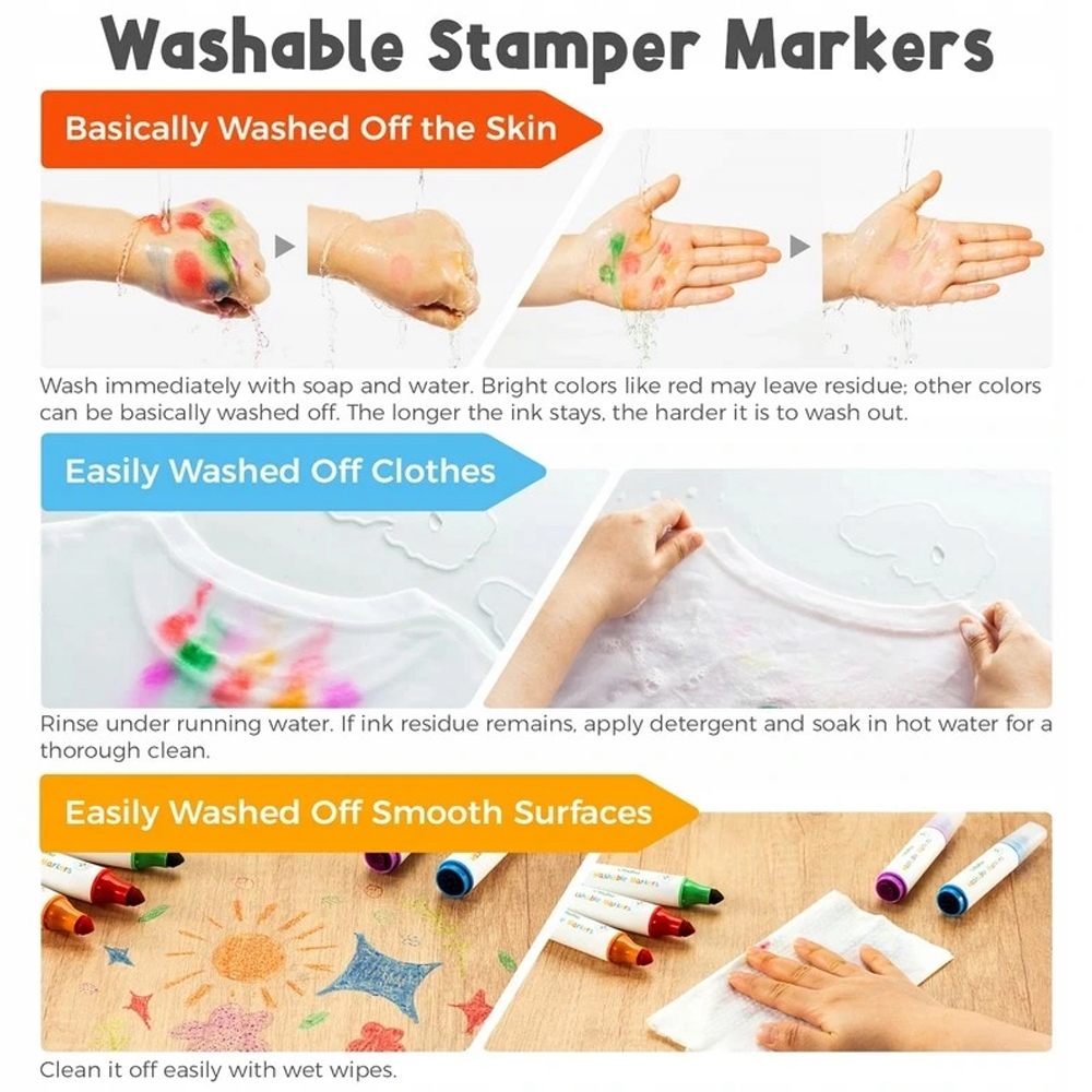 3. Tinta Lavável e Segura: Desenvolvido com tinta à base de água, o conjunto é fácil de limpar em superfícies, tecidos ou na pele, utilizando apenas água ou detergente neutro. É a escolha ideal para garantir a liberdade criativa sem preocupações com manchas permanentes.
