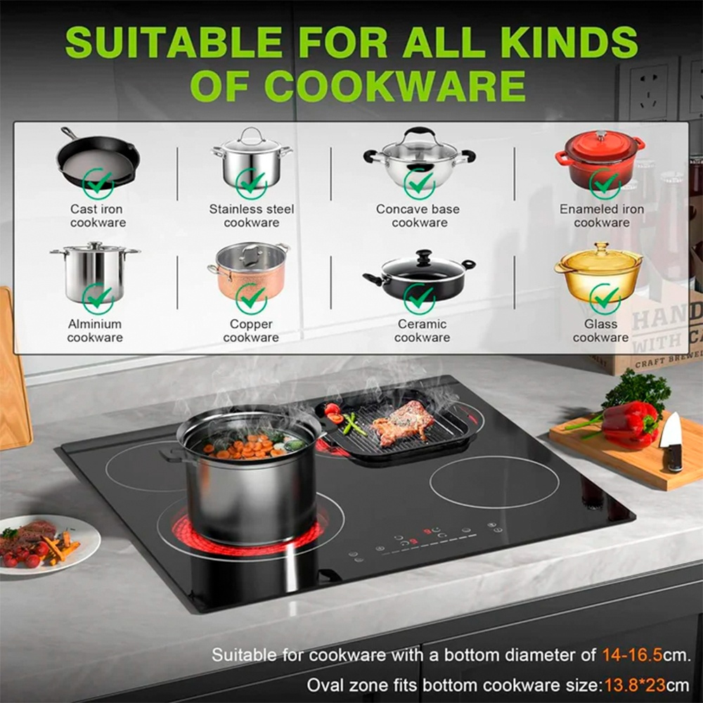 A superfície em vidro cerâmico chinês preto confere ao cooktop um acabamento elegante e durável. Suporta altas temperaturas e impactos leves, mantendo o brilho e a integridade mesmo após uso contínuo. Ideal para quem valoriza design moderno aliado à resistência estrutural.