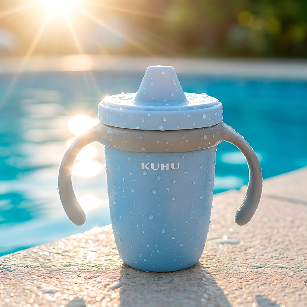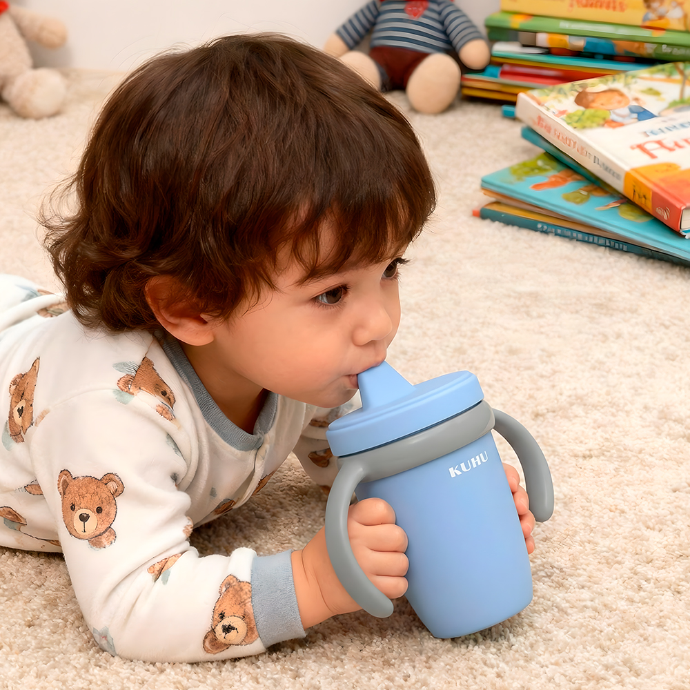 Copo de Treinamento Infantil Kuhu 240ml Azul com Bico Antivazamento Sippy para Transição. Durável, Livre de BPA e Fácil de Usar para Bebês e Crianças Pequenas