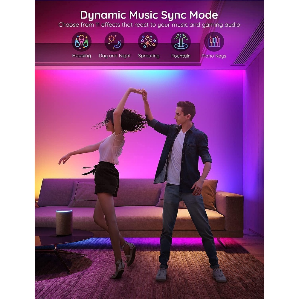 3. Sincronização Musical Imersiva: O microfone integrado de alta sensibilidade faz as luzes da Fita LED Govee pulsarem e dançarem no ritmo da sua música, filmes e jogos. Crie uma atmosfera sonora e visualmente vibrante e imersiva, ideal para animar festas, desfrutar de noites de cinema em casa ou elevar sua experiência gaming a um novo nível.