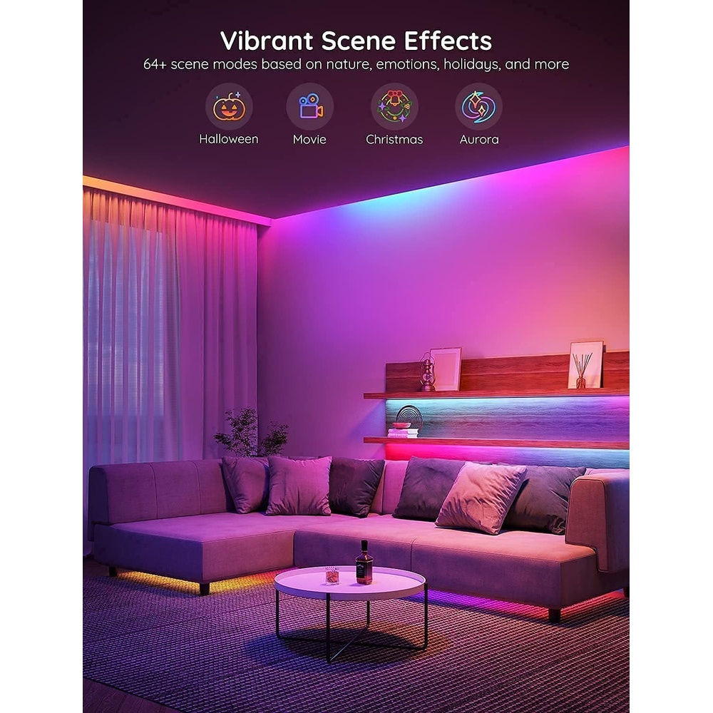 1. Cores RGBIC Vibrantes e Efeitos Dinâmicos: Transforme seu espaço com a tecnologia RGBIC, permitindo controle de segmentos independentes na Fita LED Govee. Desfrute de milhões de cores e mais de 64 modos de cena pré-definidos, criando iluminação decorativa e efeitos dinâmicos personalizados para qualquer ocasião, desde um ambiente relaxante até uma festa vibrante.