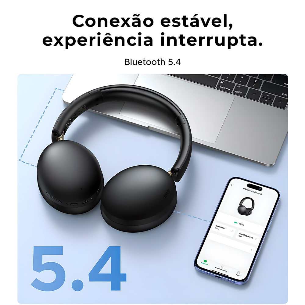 Equipado com tecnologia Bluetooth 5.4, o Ugreen HiTune Max2 oferece conexão rápida e estável com smartphones, tablets, notebooks e outros dispositivos compatíveis. A baixa latência ajuda a manter áudio e imagem sincronizados em vídeos e jogos.