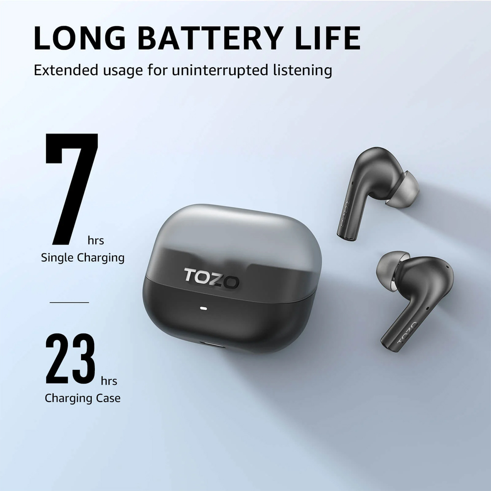 3. Conforto e Design Ergonômico Preto: Projetados para conforto prolongado, estes fones de ouvido Tozo apresentam um design ergonômico, leve e compacto. A cor preta elegante e discreta complementa qualquer estilo, sendo ideais para uso durante o trabalho, estudo, viagens ou momentos de lazer.