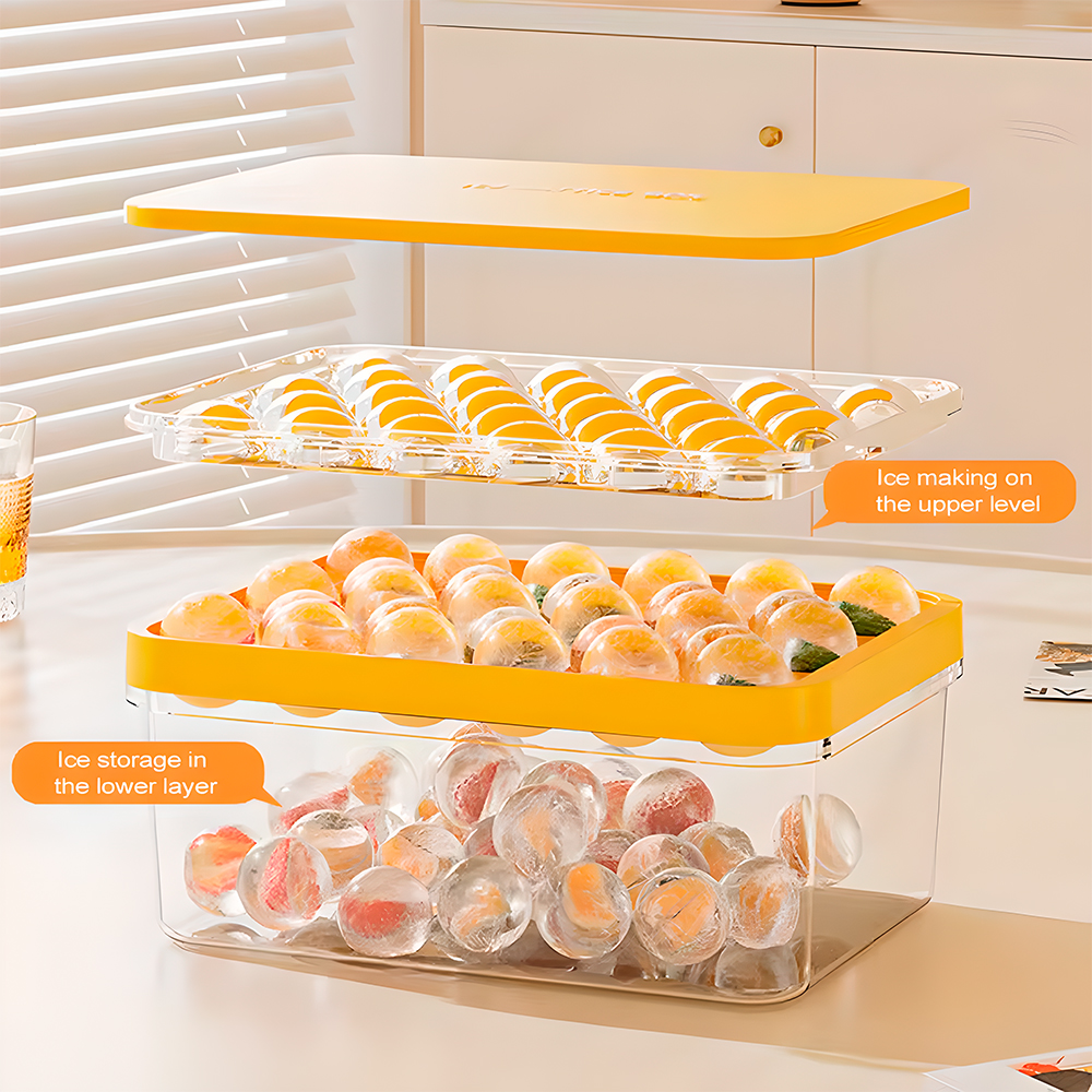 3. Rendimento e economia: molde de gelo com 28 esferas por ciclo, garantindo quantidade para servir convidados e manter bebidas geladas por mais tempo sem precisar repor toda hora.
