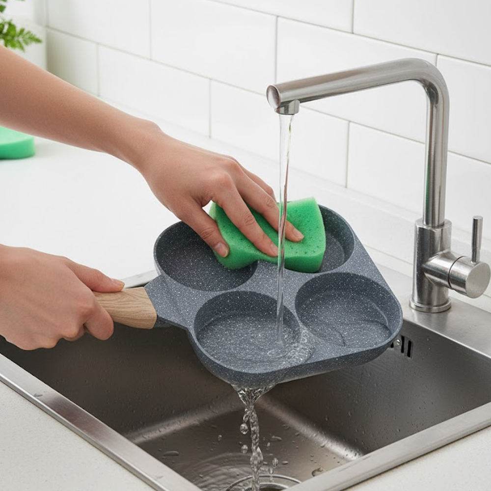 1. Revestimento Interior Duplo Antiaderente: Esta frigideira possui 2 camadas de revestimento antiaderente de alta qualidade. Essa característica garante que os alimentos, como ovos e panquecas do café da manhã, não grudem, facilitando o cozimento e tornando a limpeza extremamente simples e rápida.
