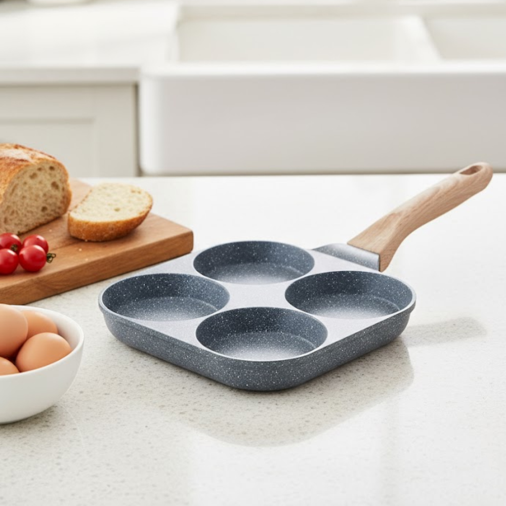 4. Ideal para o Café da Manhã: O formato e as características antiaderentes tornam esta frigideira perfeita para o preparo dos pratos mais comuns do café da manhã, como ovos fritos, omeletes e panquecas, otimizando o início do seu dia.