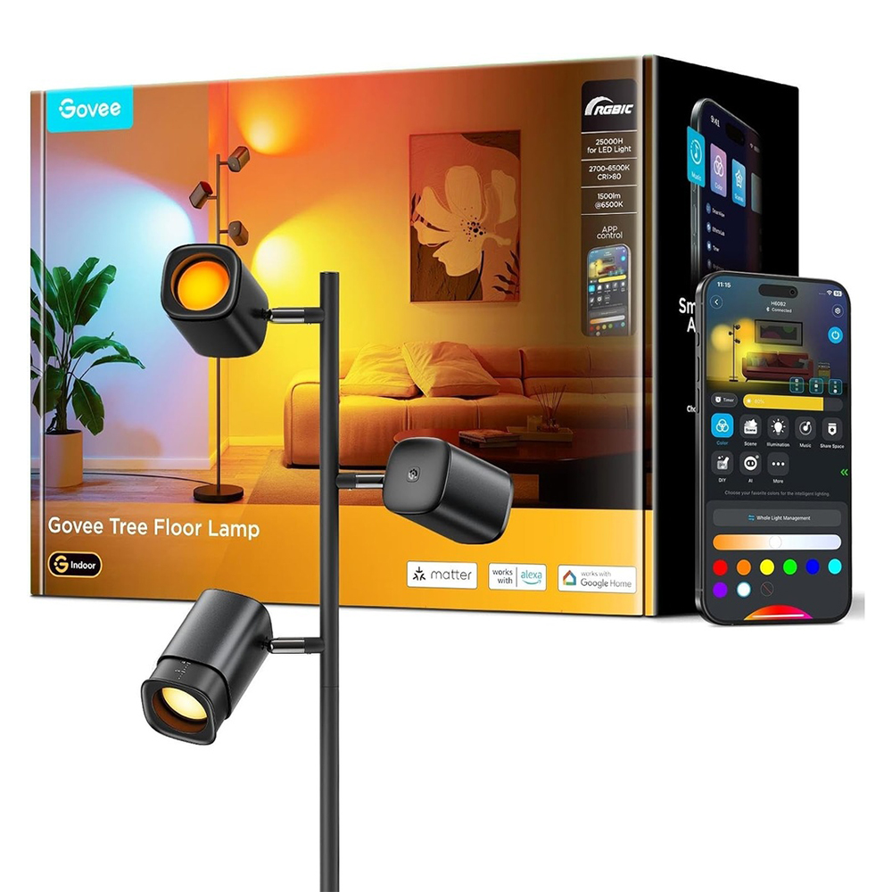 1. Controle Inteligente Matter e Govee Home: Com a Govee Luminária de Chão Inteligente, desfrute de conectividade Matter, Wi-Fi e Bluetooth. Controle sua iluminação via app Govee Home ou por comandos de voz (Alexa, Google Assistant), integrando-se ao seu ecossistema de casa conectada para uma experiência moderna e intuitiva.