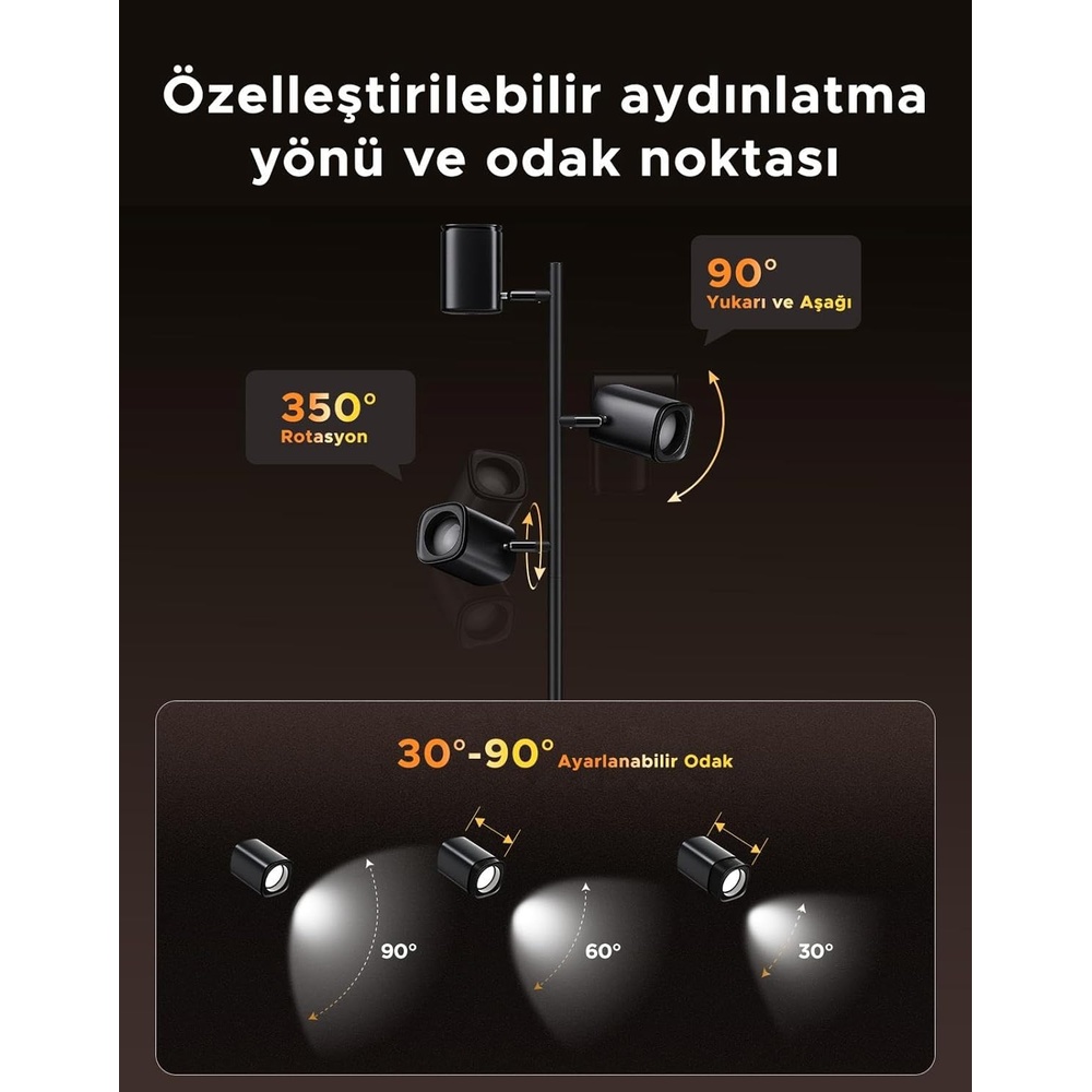 2. Focos Rotacionáveis e Iluminação Direcional: A Luminária de Piso Govee H60B2311 possui 3 focos independentes rotacionáveis em 360°. Direcione a luz para onde desejar, criando atmosferas únicas e realçando pontos específicos em sua sala, quarto ou escritório. Solução flexível para a iluminação de ambientes e sua decoração.