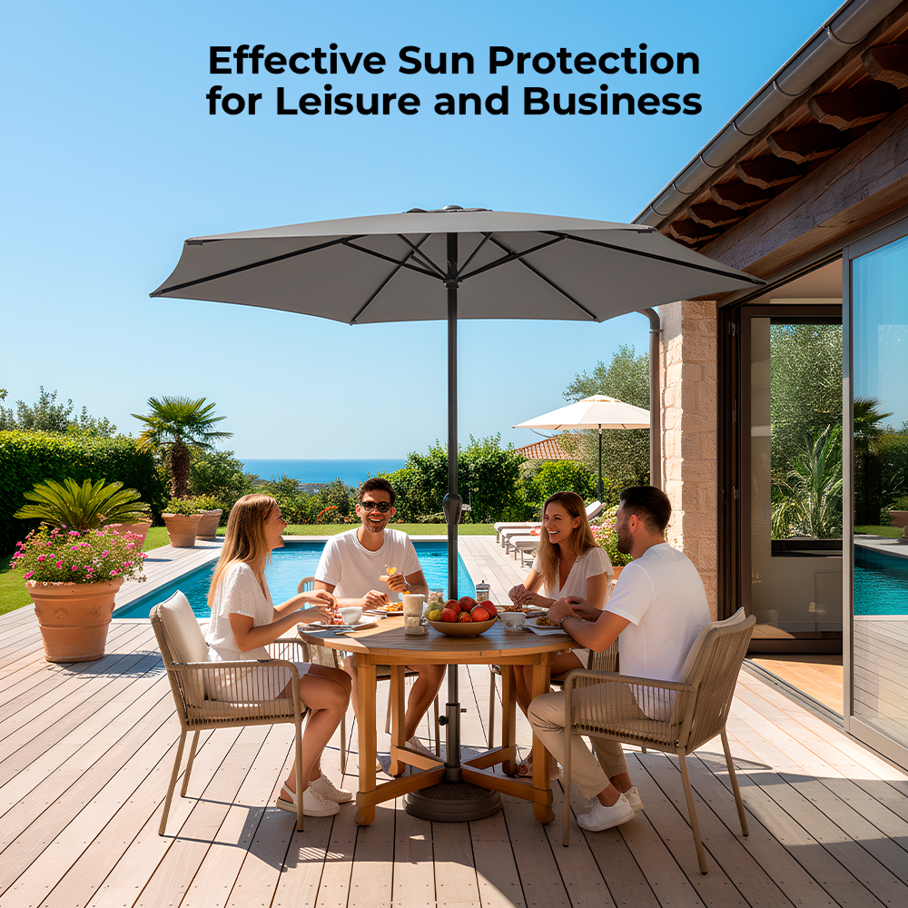 3. Design Robusto e Elegante com Estrutura Durável: Apresenta um design que une robustez e elegância, harmonizando-se com diversos estilos de decoração. Sua estrutura é construída para resistir às intempéries, garantindo longa vida útil e estabilidade para o seu guarda-sol gigante.