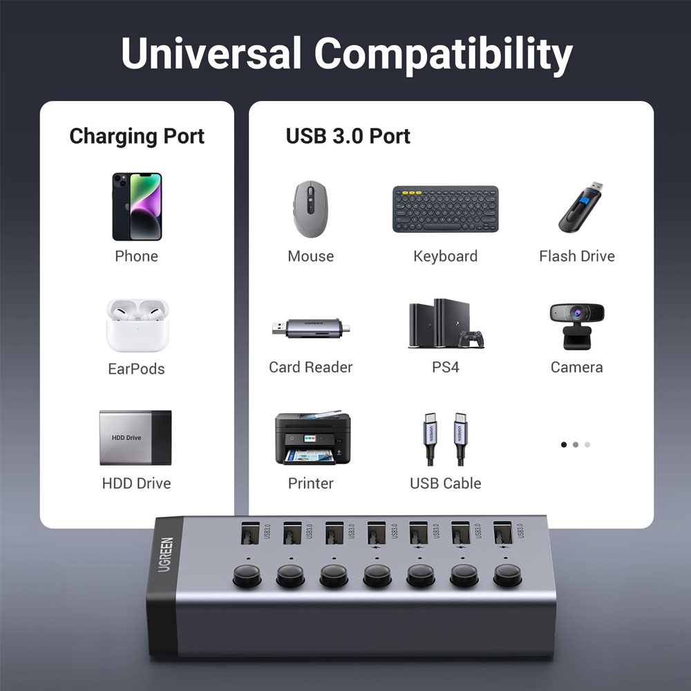 Ugreen CM481 7 Port USB 3.0 HUB (12V 2A Power Supply) EU With 12V 2A DC 90307
