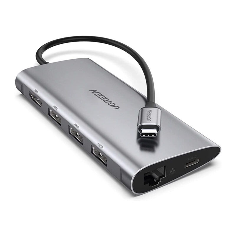 Ugreen Hub Adaptador Usb Tipo C 8 em 1 Velocidade de Transferência de Até 5Gbps 3 Portas Usb 3.0 1 Porta Hdmi Suporte para Cartão Sd e Micro Sd Porta Carregamento Pd e Rj45 Compatível com Windows e Mac OS / No Brasil