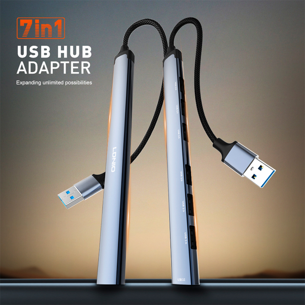 Hub USB-A LDNIO 7 em 1 Portas USB 3.0/2.0 para Notebook