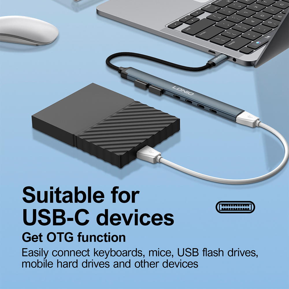 Hub Usb-C Ldnio Ds-87c Multiportas 7 Em 1 Com 1x Porta Usb 3.0, 4x Usb-C 2.0 e 2x Usb 2.0. Conectividade Alta Performance Notebooks E Desktops, Expansão Inteligente Para Seus Periféricos