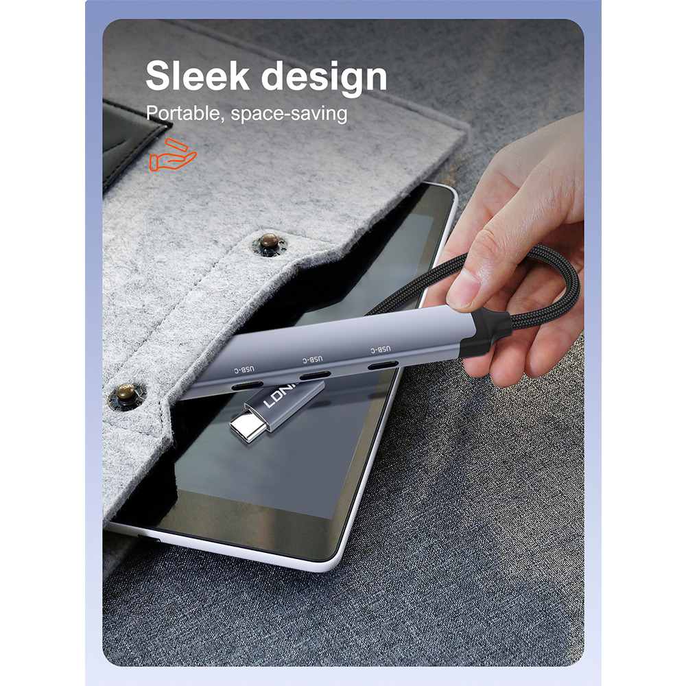 5. Leve e compacto, este adaptador multiportas LDNIO é o companheiro de viagem perfeito, ocupando pouco espaço na sua mochila ou bolsa. Sua construção robusta garante durabilidade e desempenho confiável para o uso diário, oferecendo uma solução de expansão de portas USB-C elegante e eficiente. Garantia 90 dias