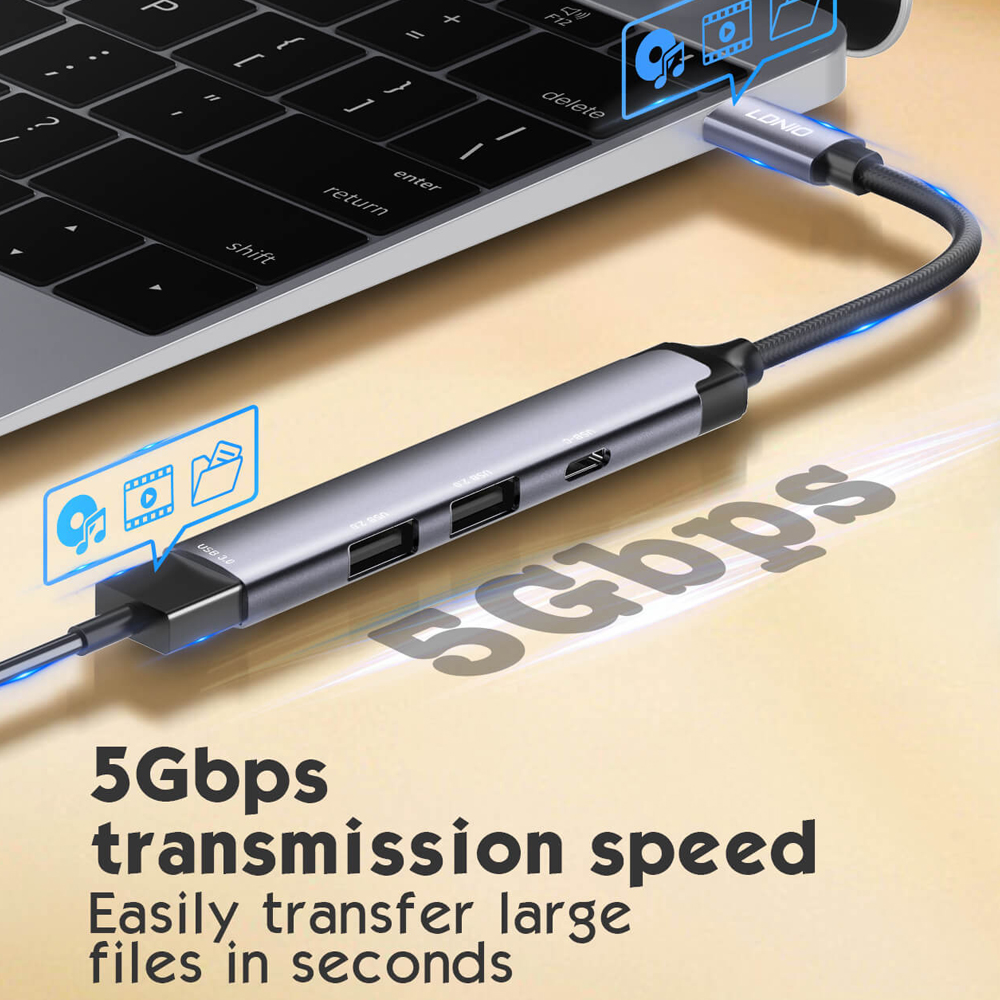 4. Desenvolvido para oferecer compatibilidade universal, o hub LDNIO USB-C é plug and play, não exigindo instalação de drivers. Conecte instantaneamente a notebooks, ultrabooks, MacBooks, PCs, tablets e smartphones com porta USB-C, desfrutando de uma experiência sem complicações em diversos sistemas operacionais, incluindo Windows, macOS e Android.