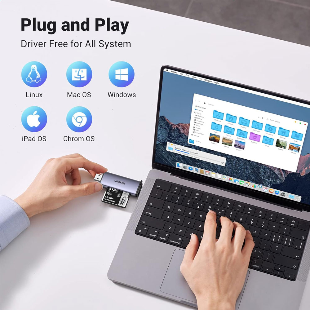 5. Plug and Play Simples: O leitor é fácil de usar, não requerendo instalação de drivers ou software. Basta conectar e começar a usar, tornando-o ideal para profissionais em constante movimento.