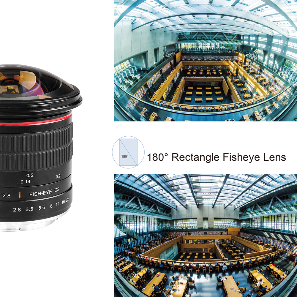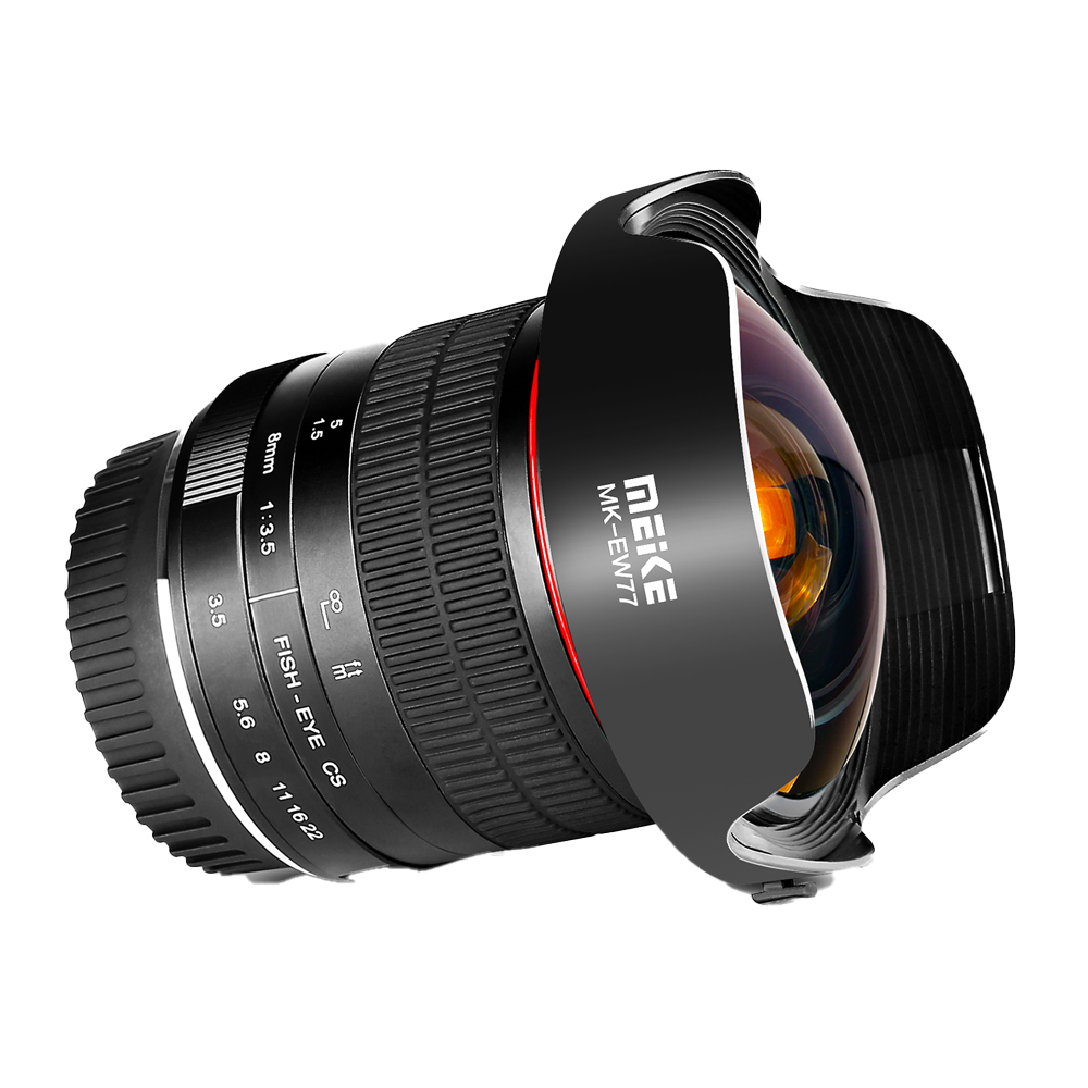 A lente Meike MK-8mm f/3.5 proporciona imagens fisheye circulares com forte distorção e campo de visão extremamente amplo, ideal para fotografia artística, paisagens, arquitetura, esportes e produções visuais criativas.