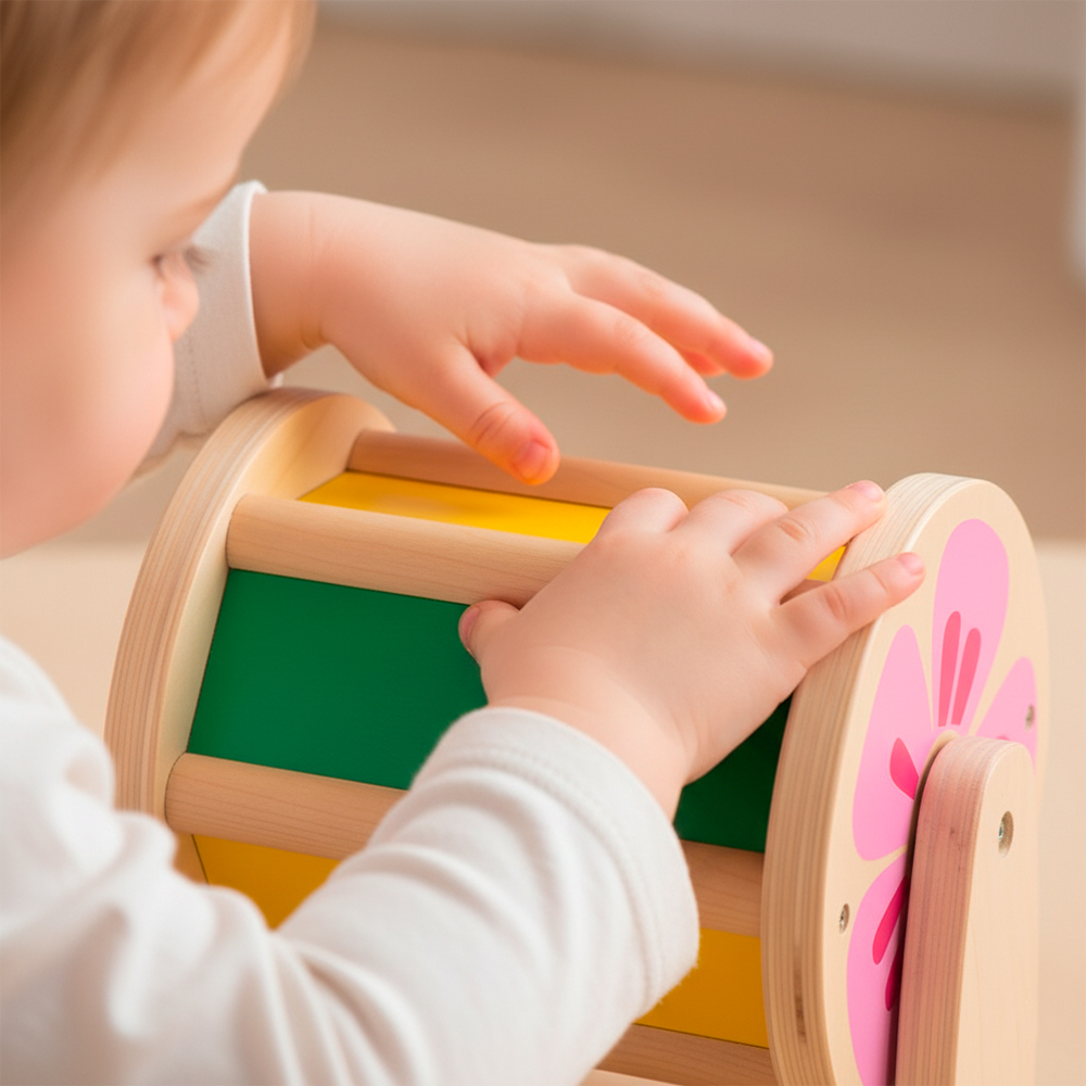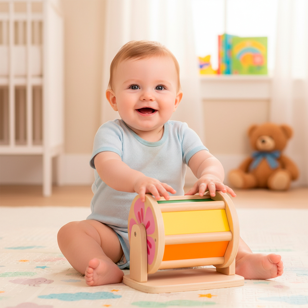 3. Design Seguro e Durável em Madeira Natural: Fabricado com materiais de alta qualidade, o Life Montessori Spin Barrel é resistente e seguro para o manuseio infantil. Sua construção robusta em madeira natural garante durabilidade e uma experiência tátil orgânica, permitindo que as crianças explorem com confiança.