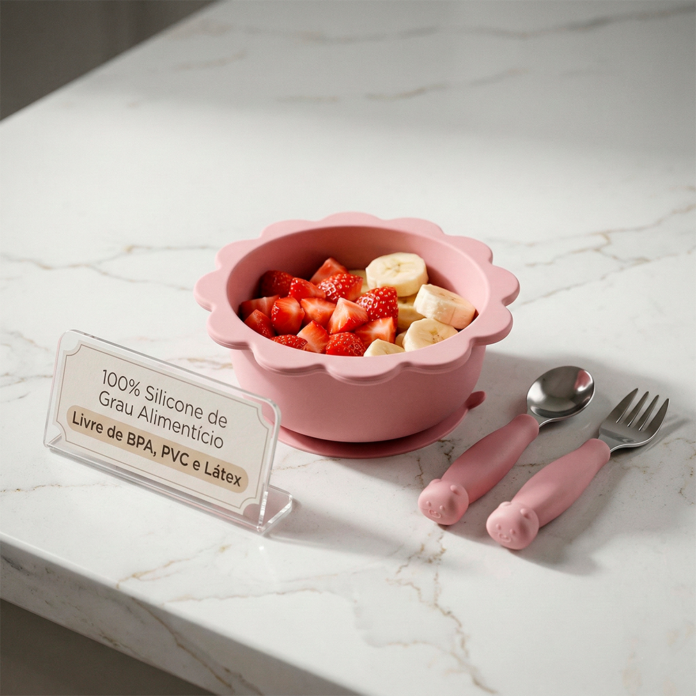 Tigela Talher Silicone Life NT-27 Alimentação Bebê Rosa
