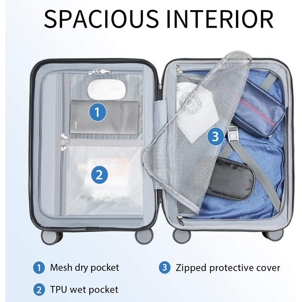 1. A mala de mão KROSER 20″ foi projetada para caber na maioria dos compartimentos superiores de companhias aéreas. Medindo aprox. 36,5 x 22,5 x 53,5 cm com rodas e alças, oferece espaço adicional para roupas e acessórios sem comprometer a mobilidade, sendo perfeita para viagens curtas e longas.