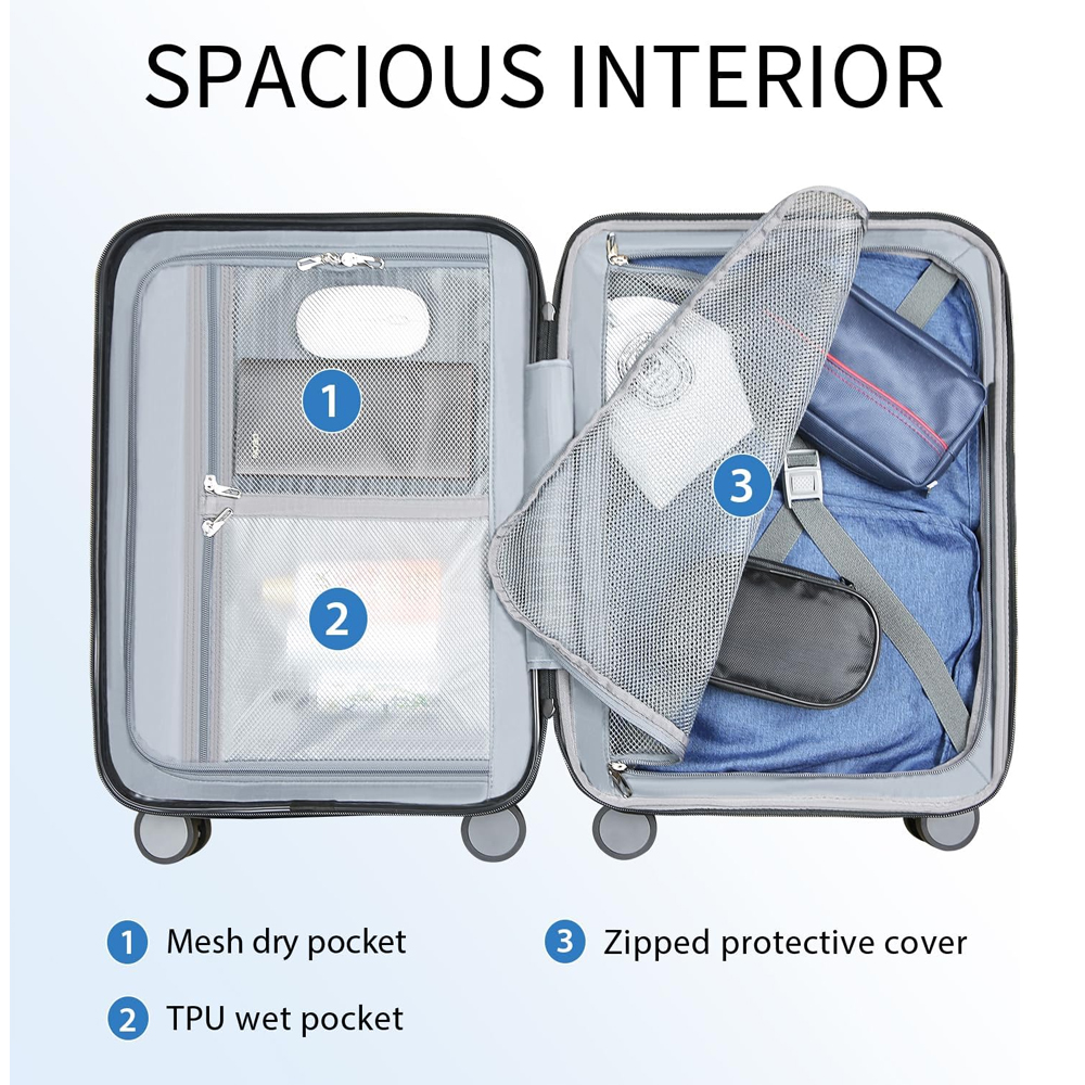 1. A mala de mão KROSER 20″ foi projetada para caber na maioria dos compartimentos superiores de companhias aéreas. Medindo aprox. 36,5 x 22,5 x 53,5 cm com rodas e alças, oferece espaço adicional para roupas e acessórios sem comprometer a mobilidade, sendo perfeita para viagens curtas e longas.
