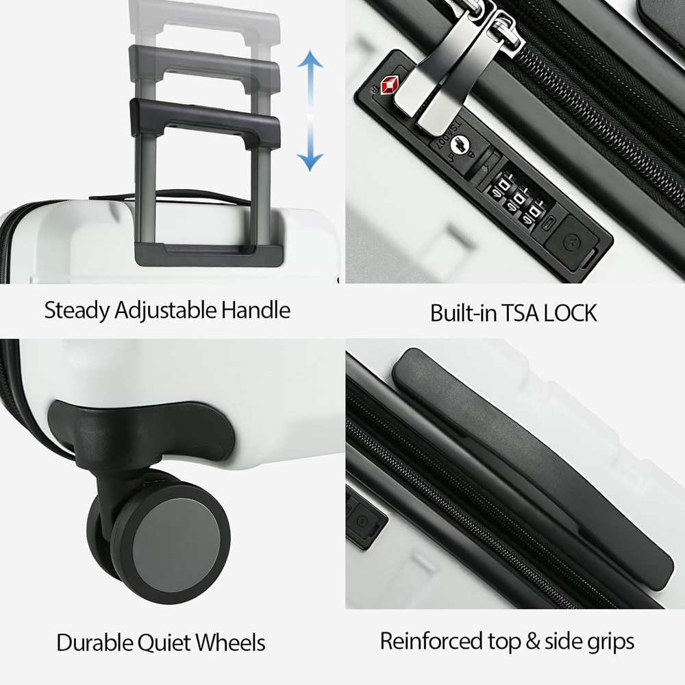 Mala de Mão Kroser 20″ Rígida Branca, Porta USB, Trava TSA, 4 Rodas Giratórias Silenciosas, Estrutura Rígida 100% PC, Compartimentos Internos Organizadores Ideal para Viagens