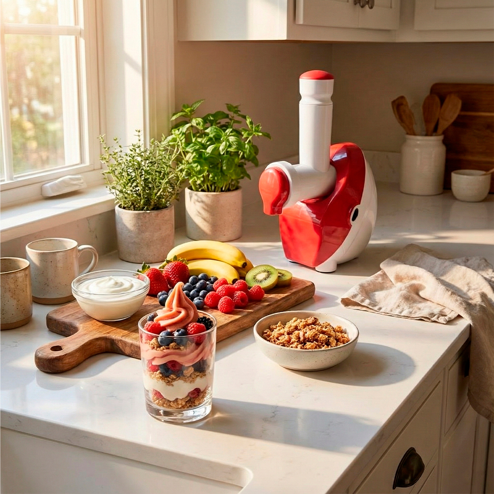 1. Transforme frutas congeladas em deliciosas sobremesas cremosas com a Máquina de Sorvete de Frutas Congeladas Hoping HIC-1001. Ideal para criar sorvetes e cremes de frutas caseiros, proporcionando uma experiência de sabor autêntica e refrescante para toda a família.